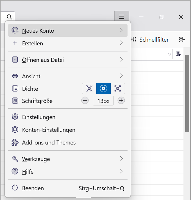 Ihr Name erscheint als Absender in Mails, die Sie aus Thunderbird versenden. Alternativ können Sie einen Spitznamen verwenden oder die E-Mail-Adresse eingeben.