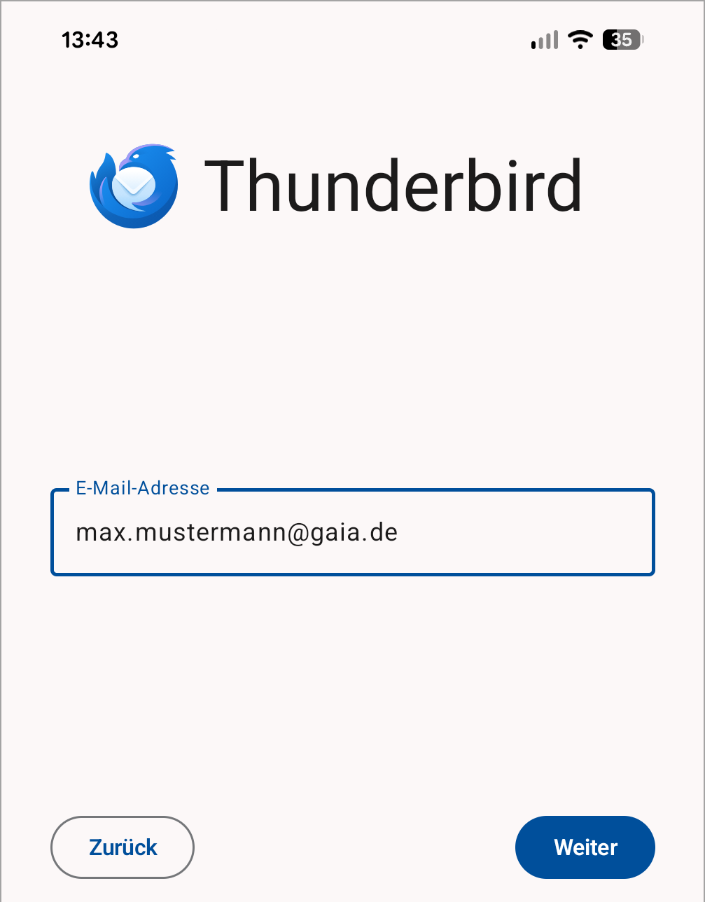 Eingabe Ihrer Gaia Mail-Adresse